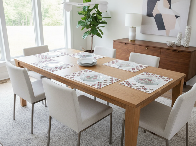 Material – 100% cotton canvas cloth; hand block printed Original price was: ₹1,285.00.₹899.00Current price is: ₹899.00. Out of stock Out of stock We ship orders within 2–4 business days, and delivery time may vary by location. Returns or exchanges are accepted within 7 days if the product is unused, unwashed, and in original condition. Since this is a handcrafted item, slight variations in color, print, or size are natural and not considered defects. Refunds/replacements are processed after quality checks. Hand or machine wash in cold water with mild detergent. Avoid bleach or harsh chemicals to preserve natural dyes. Dry in shade to maintain color vibrancy and iron on medium heat if needed. With each wash, the cotton becomes softer while retaining its beauty. Made from 100% cotton canvas. Our hand block printed Table Placemats bring warmth and style to your table. Perfect for every day meals or special gathering, each piece reflects the charm of Jaipur’s age-old printing tradition. Hand or machine washes in cold water with mild detergent. Avoid bleach or harsh chemicals to preserve natural dyes. Dry in shade to maintain color vibrancy and iron on medium heat if needed. With each wash, the cotton becomes softer while retaining its beauty. This product is handmade. There may be small imperfections or differences in shape, size, and colour which are inherent to the process and what makes it unique. Actual colors may vary slightly due to your screen’s resolution and settings.