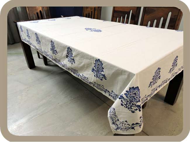 Hand Block Printed Table Cover – Jaipur Collection – Blue Pottery
