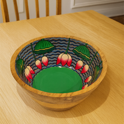 Hand-Painted Wooden Bowl – Lotus Lagoon