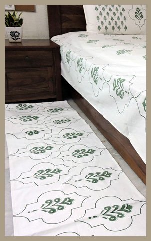 Premium Hand block Printed Bed Side Runner –Buta Green