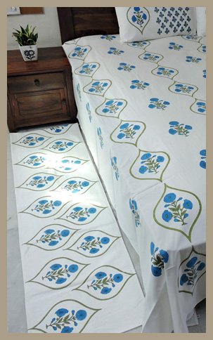Hand block-printed Jaipur bed sheets are a testament to Rajasthan's age-old artistry. Skilled artisans use wooden blocks intricately carved with traditional motifs to create exquisite patterns.