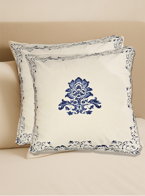 Premium Hand block Printed Blue Pottery – Set of 2 Cushion Covers