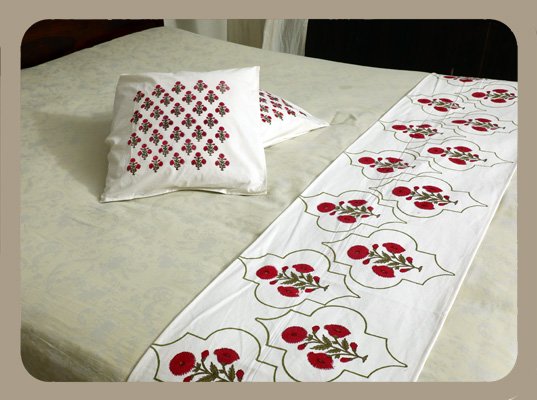 Premium Hand block Printed Red Poppy MG – Bed Runner with 2 Cushion Covers