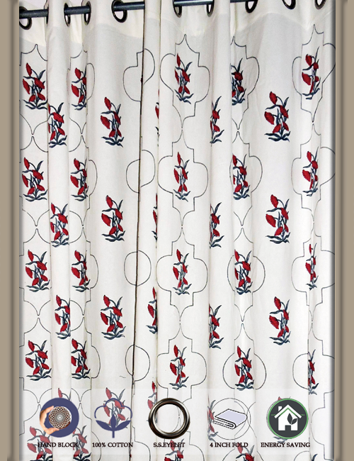Material – 100% cotton; hand block printed Size: 5 feet (110 X 152 cm) 7 feet (110 X 220 cm) 9 feet (110 X 275 cm) Quantity – 1 Piece Weight – 300 gm Care Instructions – Wash in cold water Price range: ₹699.00 through ₹899.00 We ship orders within 2–4 business days, and delivery time may vary by location. Returns or exchanges are accepted within 7 days if the product is unused, unwashed, and in original condition. Since this is a handcrafted item, slight variations in color, print, or size are natural and not considered defects. Refunds/replacements are processed after quality checks. Hand or machine wash in cold water with mild detergent. Avoid bleach or harsh chemicals to preserve natural dyes. Dry in shade to maintain color vibrancy and iron on medium heat if needed. With each wash, the cotton becomes softer while retaining its beauty. Enhance your living space with the timeless elegance of Jaipur's hand block-printed curtains. Crafted by skilled artisans, these curtains feature intricate designs and vibrant colors that reflect the rich cultural heritage of Rajasthan. Made from high-quality fabric, they provide a perfect balance of privacy and style while adding warmth and sophistication to any room. A beautiful blend of tradition and functionality, these curtains are an ideal choice for elevating your home decor. Hand or machine washes in cold water with mild detergent. Avoid bleach or harsh chemicals to preserve natural dyes. Dry in shade to maintain color vibrancy and iron on medium heat if needed. With each wash, the cotton becomes softer while retaining its beauty. This product is handmade. There may be small imperfections or differences in shape, size, and colour which are inherent to the process and what makes it unique. Actual colors may vary slightly due to your screen’s resolution and settings.