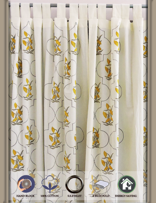 Material – 100% cotton; hand block printed Size: 5 feet (110 X 152 cm) 7 feet (110 X 220 cm) 9 feet (110 X 275 cm) Quantity – 1 Piece Weight – 300 gm Care Instructions – Wash in cold water Price range: ₹699.00 through ₹899.00 We ship orders within 2–4 business days, and delivery time may vary by location. Returns or exchanges are accepted within 7 days if the product is unused, unwashed, and in original condition. Since this is a handcrafted item, slight variations in color, print, or size are natural and not considered defects. Refunds/replacements are processed after quality checks. Hand or machine wash in cold water with mild detergent. Avoid bleach or harsh chemicals to preserve natural dyes. Dry in shade to maintain color vibrancy and iron on medium heat if needed. With each wash, the cotton becomes softer while retaining its beauty. Enhance your living space with the timeless elegance of Jaipur's hand block-printed curtains. Crafted by skilled artisans, these curtains feature intricate designs and vibrant colors that reflect the rich cultural heritage of Rajasthan. Made from high-quality fabric, they provide a perfect balance of privacy and style while adding warmth and sophistication to any room. A beautiful blend of tradition and functionality, these curtains are an ideal choice for elevating your home decor. Hand or machine washes in cold water with mild detergent. Avoid bleach or harsh chemicals to preserve natural dyes. Dry in shade to maintain color vibrancy and iron on medium heat if needed. With each wash, the cotton becomes softer while retaining its beauty. This product is handmade. There may be small imperfections or differences in shape, size, and colour which are inherent to the process and what makes it unique. Actual colors may vary slightly due to your screen’s resolution and settings.