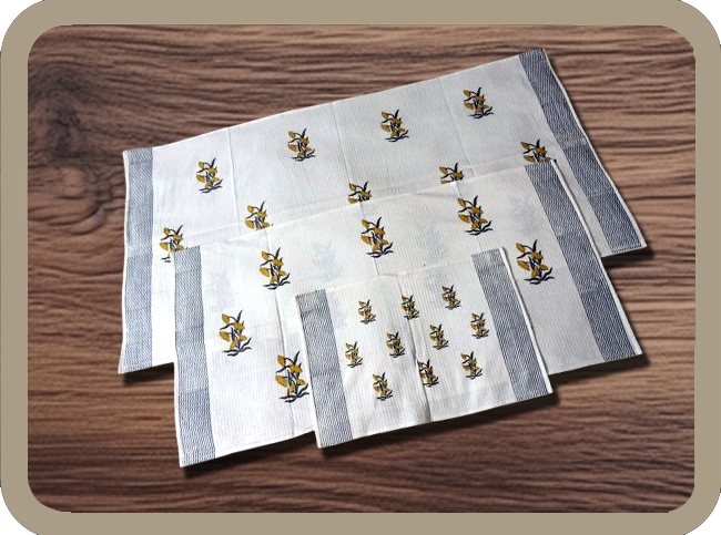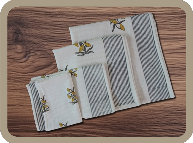 Special Block print Yellow Floral Bath/Hand/Face Waffle Towel set